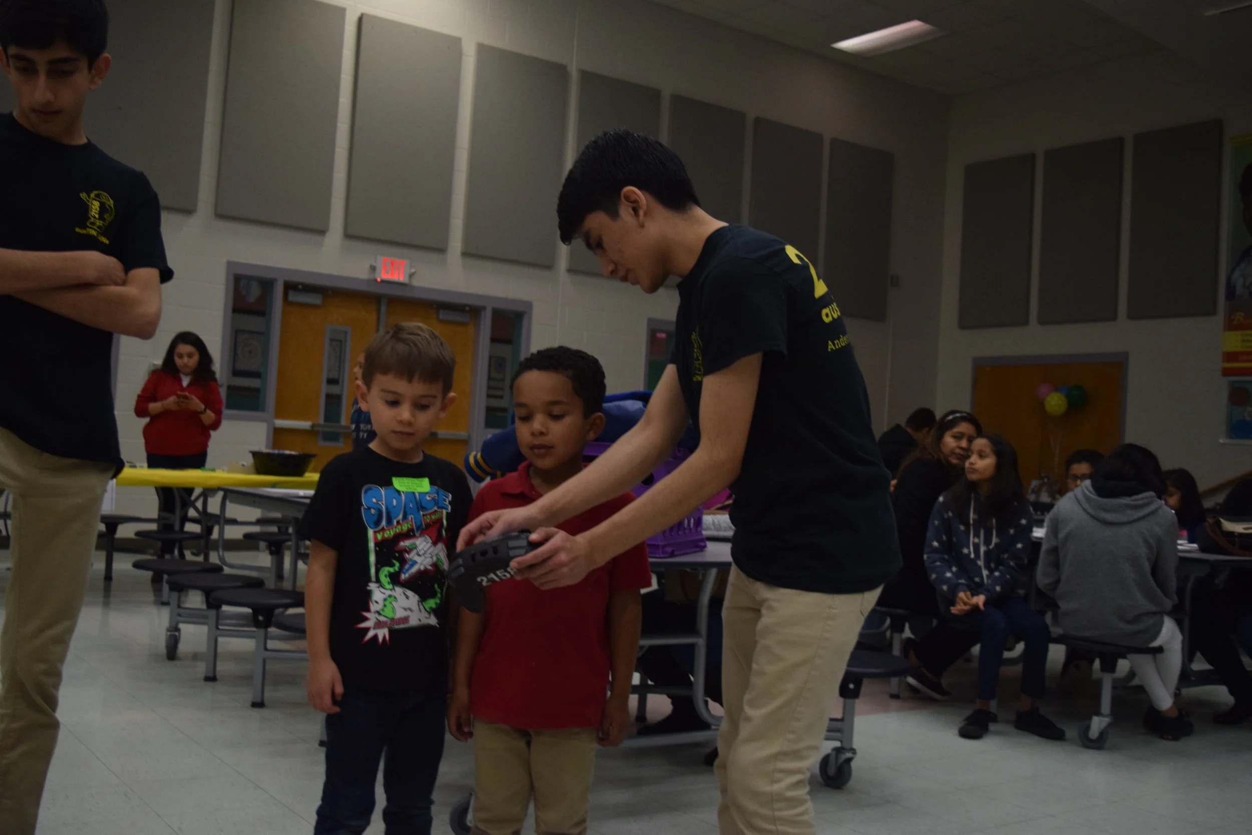 Some students visited Barbara Jordan Elementary on Thursday, January 31st. They attended their Science night, where different activities were put out for the students and public alike. VEX members Mauricio Hernandez and Arrash Setayesh and FRC member Leah Griffith attended to help spread STEM at the local school. Students gathered to watch the robot, hear inspirational (and punny) speeches, as well as drive one of the VEX robots!